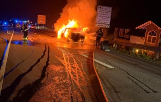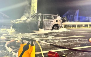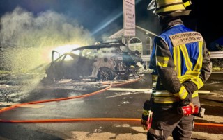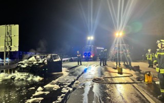 Einsatz Nr. 48 20.08.2025 22:43 Uhr "Pkw in Vollbrand", so lautete die Alarmmeldung gestern Abend. Zusammen mit der örtlich zuständigen Wehr Ahornöd rückten wir auf die B12 Höhe Rettung Stadler aus. Da ein Übergreifen auf die angrenzende Böschung nicht ausgeschlossen werden konnte, ließ der Einsatzleiter die Feuerwehr Kreuzberg nachalarmieren. Eine zufällige vorbeifahrende Streife der Bundespolizei versuchte noch mittels Feuerlöscher den Brand einzudämmen, bei diesem Ausmaß leider vergeblich. Unter schweren Atemschutz löschten wir den Brand ab. Die Motorhaube musste mit dem Spreizer geöffnet werden, um so an alle Brandherde heranzukommen. Die Straße sowie ein Wegweiser sind sehr in Mitleidenschaft gezogen, am [...]