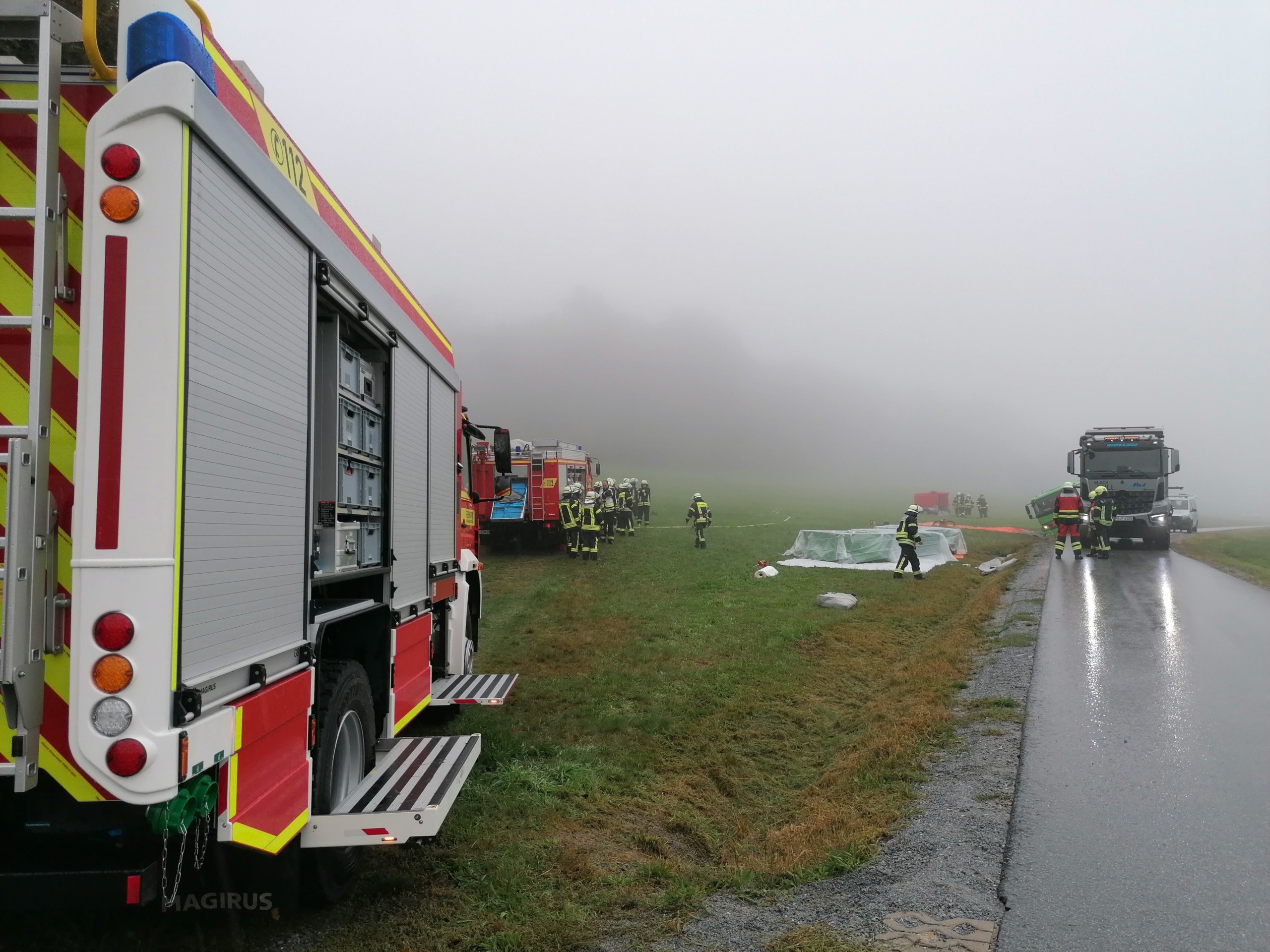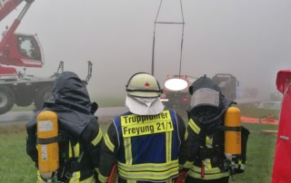 Gruze2024-09-16T17:39:12+02:00Einsatz Nr. 67 16.09.2024 12:07 Uhr Heute Mittag wurden wir zur Unterstützung der Feuerwehr Unterhöhenstetten zum Neidlingerberg alarmiert. Dort geriet ein Öltankwagen, beladen mit ca. 10.000 Liter Heizöl, ins Bankett und drohte umzustürzen. Nach Rücksprache mit Gefahrgut-KBM Saiko wurden die Feuerwehren Waldkirchen und Freyung, ausgerüstet mit entsprechender Ölwehr- und Gefahrgutausrüstung, nachalarmiert. Nach Beladen der Fahrzeug mit der benötigten Ausrüstung machten wir uns umgehend auf den Weg. Vor Ort war noch unklar, ob vom Tankwagen das Öl umgepumpt werden muss oder ob er durch ein Bergeunternehmen angehoben werden kann. Aus diesem Grund wurden spezielle Auffangbehälter in Stellung gebracht sowie der Brandschutz [...]