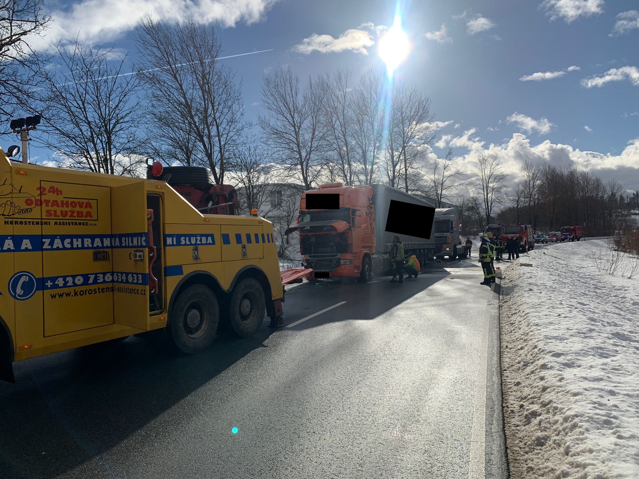 Am heutigen Mittwoch wurden wir erneut zum Lkw Unfall in Sonndorf alarmiert. Bereits um kurz nach 10 Uhr rückte die Wehr aus Hinterschmiding an, um beim Bergevorgang den Verkehr zu lenken. Dies verzögerte sich jedoch bis in die Nachmittagsstunden. Beim Herausziehen wurde der Dieseltank des Lkw so beschädigt, dass er komplett entleert werden musste. Dazu wurden wir mit dem Ölschaden-Anhänger angefordert. Zeitgleich wurden die Wehren aus Philippsreut und Herzogsreut nachalarmiert, um den Verkehr großräumig umzuleiten. Der aus Tschechien kommende Verkehr wurde über Mauth und Kreuzberg umgeleitet, der Verkehr aus Freyung über Sonndorf und Hinterschmiding. Die B 12 war im Bereich der Unfallstelle komplett gesperrt. Erst gegen 15:30 Uhr konnten wir wieder abrücken, nach dem die Straße gesäubert wurde. Danach waren/sind noch Reinigungsarbeiten im Gerätehaus notwendig.