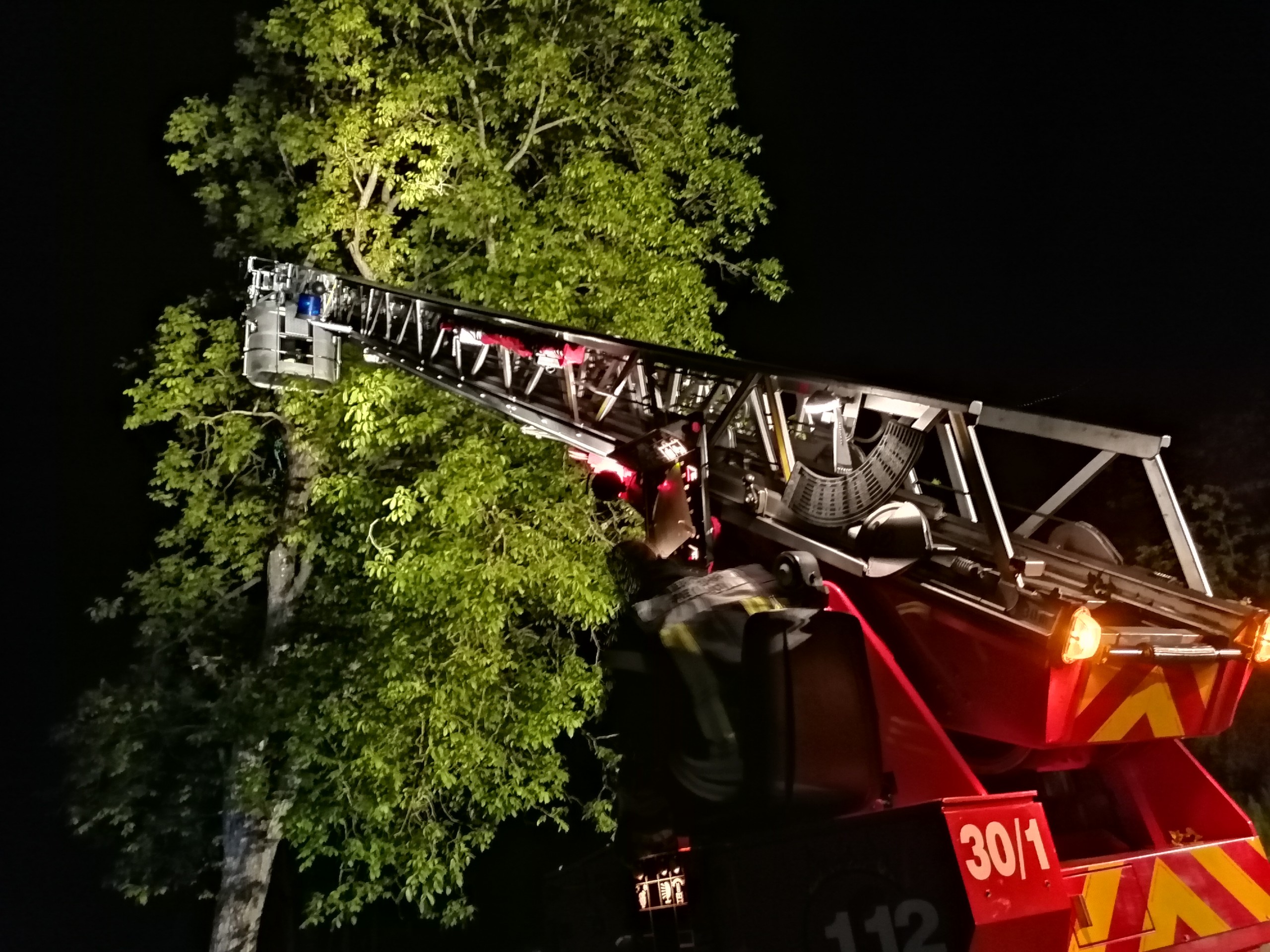 Gestern Abend wurden wir telefonisch durch die Kameraden der Feuerwehr Köppenreut/Falkenbach zu einer Kleintierrettung nach Feldscheid gerufen. Eine Katze befand sich schon zwei Tage auf einem Baum, alle Versuche sie herunterzuholen scheiterten. Die Besitzer ließen dann gegen 22:14 Uhr die örtlich zuständige Wehr alarmieren. Auch mittels Steckleiter war das Tier nicht zu erreichen. Mittels unserer Drehleiter wurde der Besitzer zur Katze manövriert und das Tier sprang erleichtert in seine Arme. Gegen Mitternacht waren wir wieder am Gerätehaus.