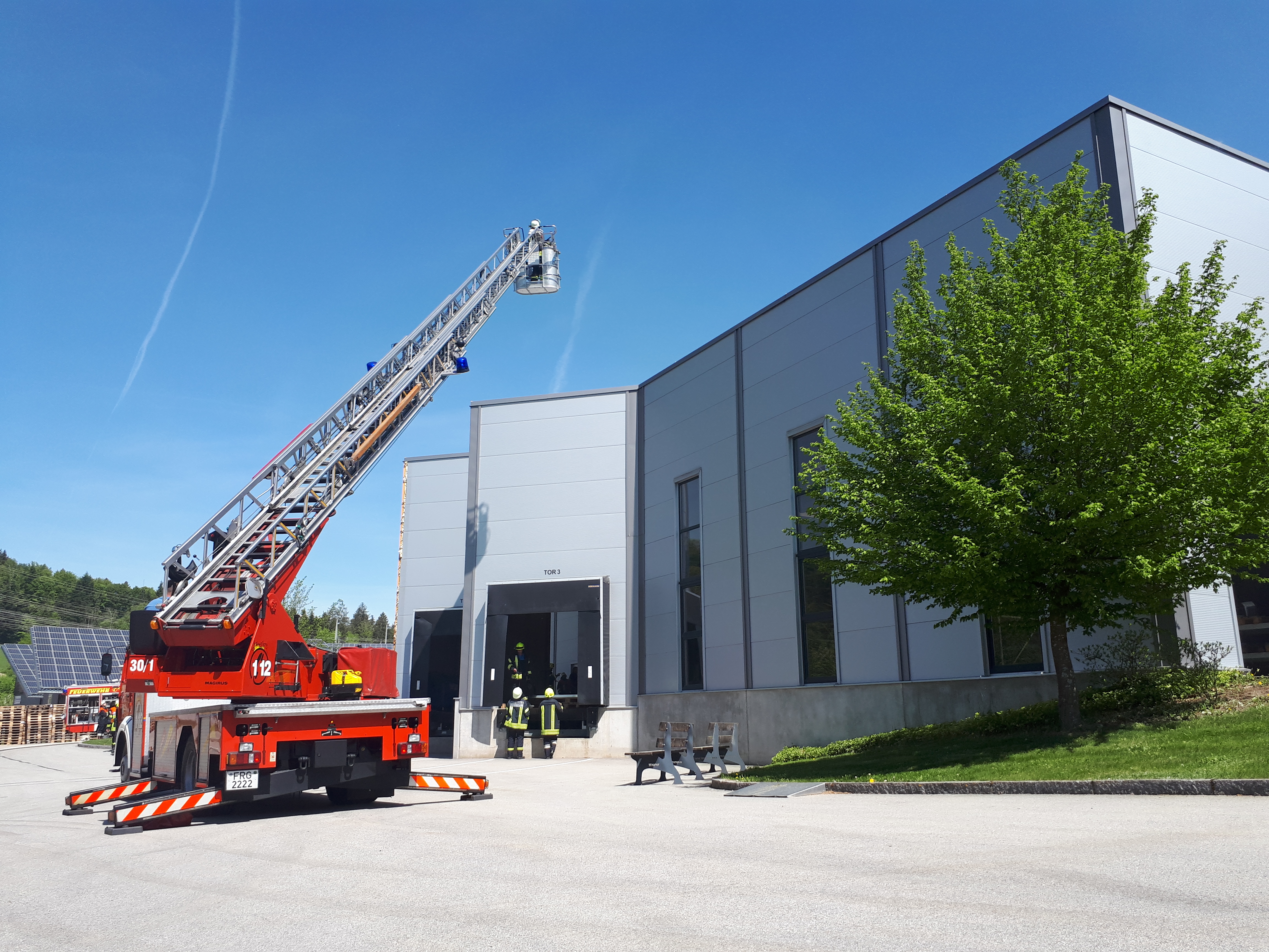 Heute Nachmittag wurden wir zu einem Maschinenbrand nach Prombach alarmiert. Durch die ILS Passau wurde das Stichwort B4 – Industriegebäude ausgelöst, woraufhin eine Vielzahl von Rettungs- und Einsatzkräften ausrückten. Vor Ort war eine starke Rauchentwicklung zu vernehmen. Mehrere Trupps unter schwerem Atemschutz machten sich sofort zum Brandobjekt auf. Die Maschine konnte soweit abgekühlt werden, dass sie mit einem Gabelstapler ins Freie gebracht werden konnte und somit kein Rauch mehr in die Halle gelangte. Wir überprüften mit der Drehleiter und der Wärmebildkamera die Dachtemperatur, das TLF mit dem Schaum-/Wasserwerfer war auf Bereitschaft. Nach einer halben Stunde konnten wir wieder abrücken.