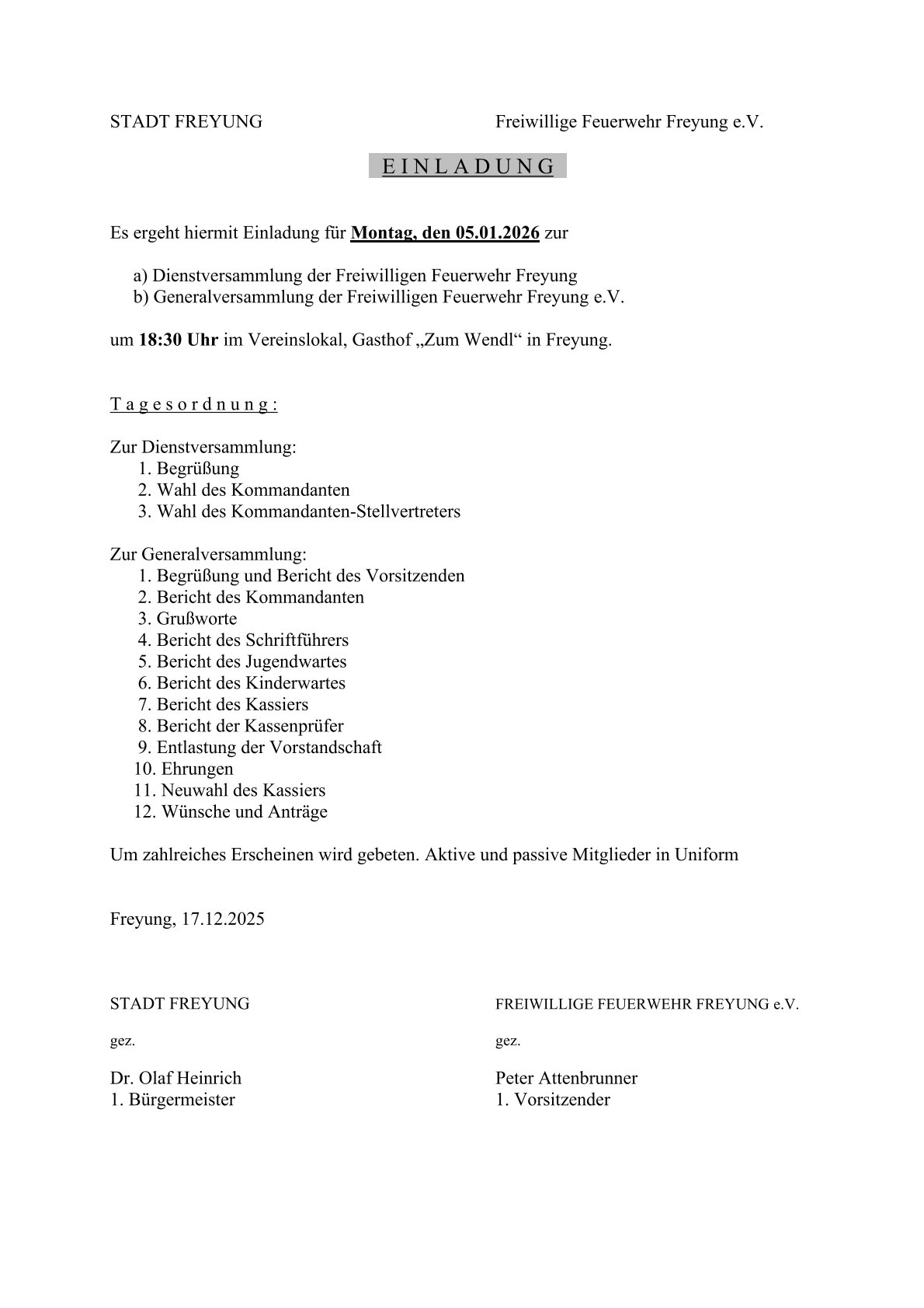 Dafür möchten Ihr alle Mitglieder und Freunde der Feuerwehr Freyung ein herzliches Dankeschön sagen!