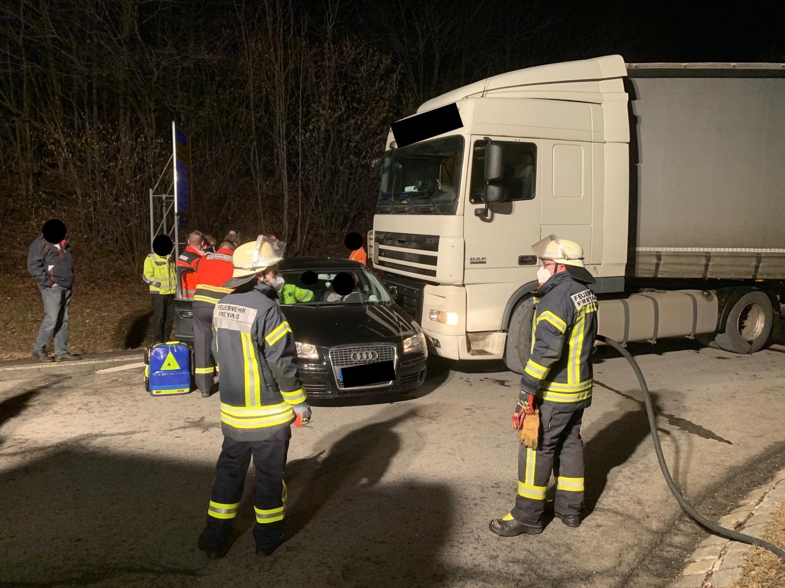 „Verkehrsunfall Pkw gegen Lkw“, so wurden wir gestern Abend auf die B 12 zwischen Kreisverkehr und Abzweigung Bannholz alarmiert. Ein Schadensbild, bei dem allen erst einmal der Schreck in die Glieder fährt, da hier meistens schwere Verletzungen die Folge sind. An der Einsatzstelle angekommen fanden wir folgende Lage vor: ein Pkw wurde seitlich an der Fahrerseite vom Lkw erfasst, eine Patientin befand sich noch im Fahrzeug. Wir sicherten den Brandschutz und sperrten zusammen mit der Wehr aus Ahornöd die B 12 in diesem Teilbereich komplett. Vorsorglich wurde der hydraulische Rettungssatz bereitgelegt, um evtl. die Fahrertüre öffnen zu können. Dies war nachdem der Lkw wegranchierte ohne schweres Gerät möglich. Nach etwa einer Stunde war der Einsatz für uns beendet. Über den Verletzungsgrad können wir keine Auskunft geben, wir wünschen auf diesem Wege schnelle Genesung.