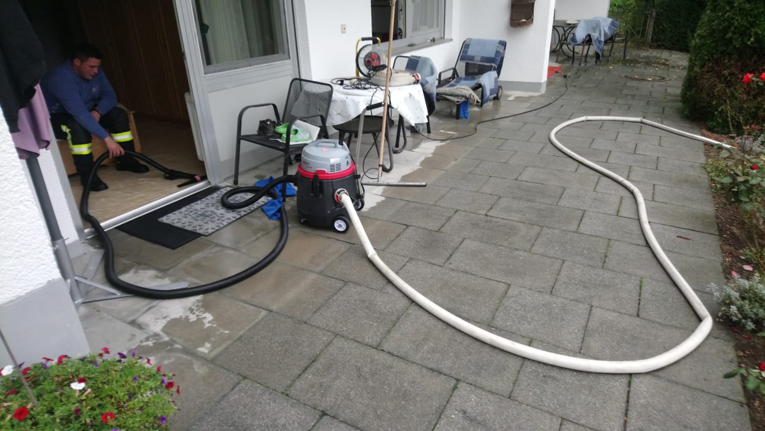 Durch einen undicht gewordenen Wasserschieber wurde die Wohnung ca. 10 Zentimeter unter Wasser gesetzt. Nach etwa zweistündigem Einsatz von Wassersaugern konnten wir wieder abrücken.